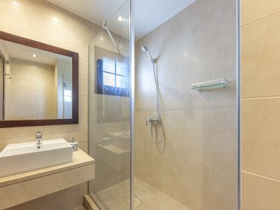 South-facing triplex located in a gated community in Altos de Los Monteros, Marbella East. The property is distributed over three levels and comprises: