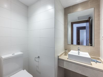 First floor: entrance hall; fully fitted kitchen with access to a utility terrace; guest toilet; pantry; spacious living-dining room with access to the covered porch; guest bedroom (Bedroom 1) with en-suite bathroom and access to an exterior terrace.
