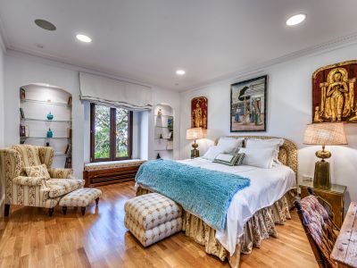 The property is surrounded by an impeccably maintained garden, with fruit trees, mature plants, ponds, graceful fountains, sculptures and serene water features. Besides, there is a small house offering panoramic 360-degree views, serving as a dedicated space for painting or hobbies.