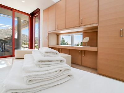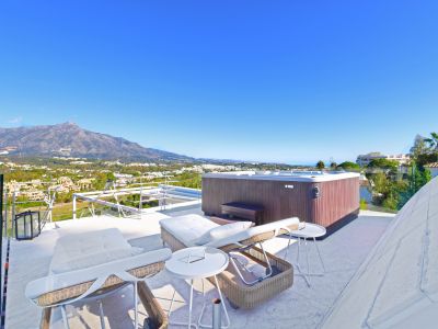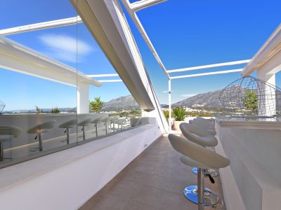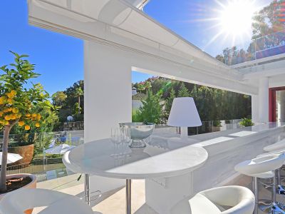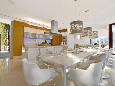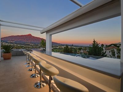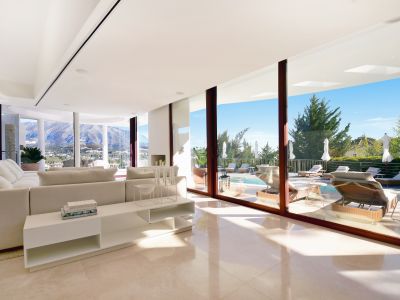 When entering this remarkable villa the modern architecture harmonious melt together with a panoramic view over La Concha Mountain and Las Brisas golf.