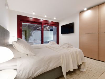 The 7 bedrooms are positioned well apart for total privacy. You will find two master bedrooms bedrooms on the second floor with access to the bar and lounge area. The impressive master bedroom is spacious with great en-suite bathroom, with views overlooking the valley. The ground floor has 5 bedrooms with 6 king size beds and 4 en-suite bathrooms, all with access to terrace and pool area. You will also find the outdoor gym and lounge, as well as a cinema room and games room.