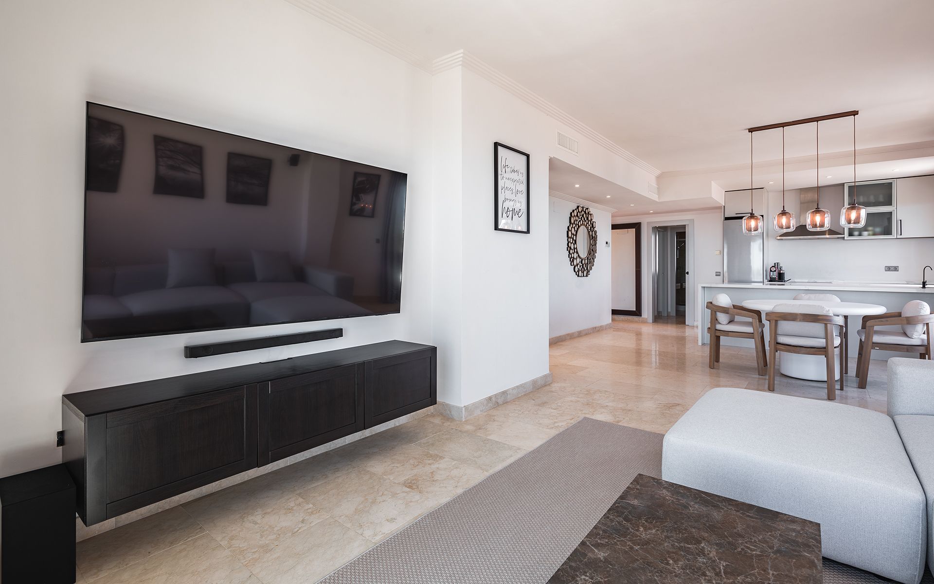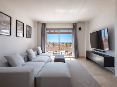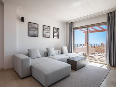 Spectacular one level penthouse enjoying panoramic sea views in Hacienda del Señorio de Cifuentes, Benahavis. All in one level, property comprises: entrance hall; living/dining room with access to two terraces: one southeast-facing with views to La Concha mountain, Atalaya golf course, and the sea, and one south/southwest-facing with panoramic sea, Gibraltar, and North of Africa views; open plan fully equipped kitchen with top quality Siemens appliances; en-suite master bedroom with access to the terrace; and 2 bedrooms sharing a bathroom. Extra features include: 24h security and concierge service; CCTV cameras throughout; A/C hot and cold with Airzone controllers; underfloor heating throughout; gas BBQ. Located in a peaceful location just 15 minutes drive to Puerto Banús and the beach.