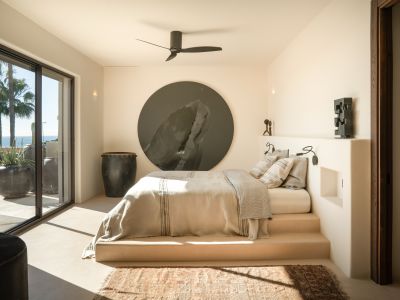 Located less than 1 km from the beach, the villa is close to three restaurants, the beach, a new paddle club and just a 10-minute drive from Estepona and Puerto Banus, and 45 minutes from Malaga airport. This architectural masterpiece, both for its interior and exterior design, is truly incomparable on the Costa del Sol.