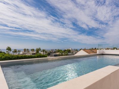 A highlight of this exceptional property is the 100 m² rooftop solarium. This stunning area includes a private pool, outdoor dining space, and a chill-out zone, where you can unwind while taking in the panoramic views of the Mediterranean Sea. It is the perfect place to entertain or simply enjoy the beauty of Marbella’s sunsets.