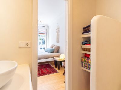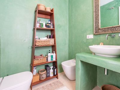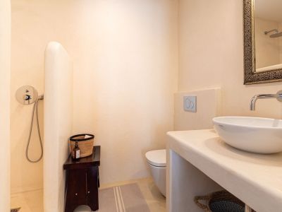 Upstairs, natural light guides you to two generously sized and bright bedrooms, each offering beautiful views that invite slow, peaceful mornings. Both bedrooms feature en-suite bathrooms finished in exquisite Moroccan tatale, a design choice that lends a unique and soulful character to the space. One of the bedrooms also includes a small walk-in closet — perfect for keeping things effortlessly organized.