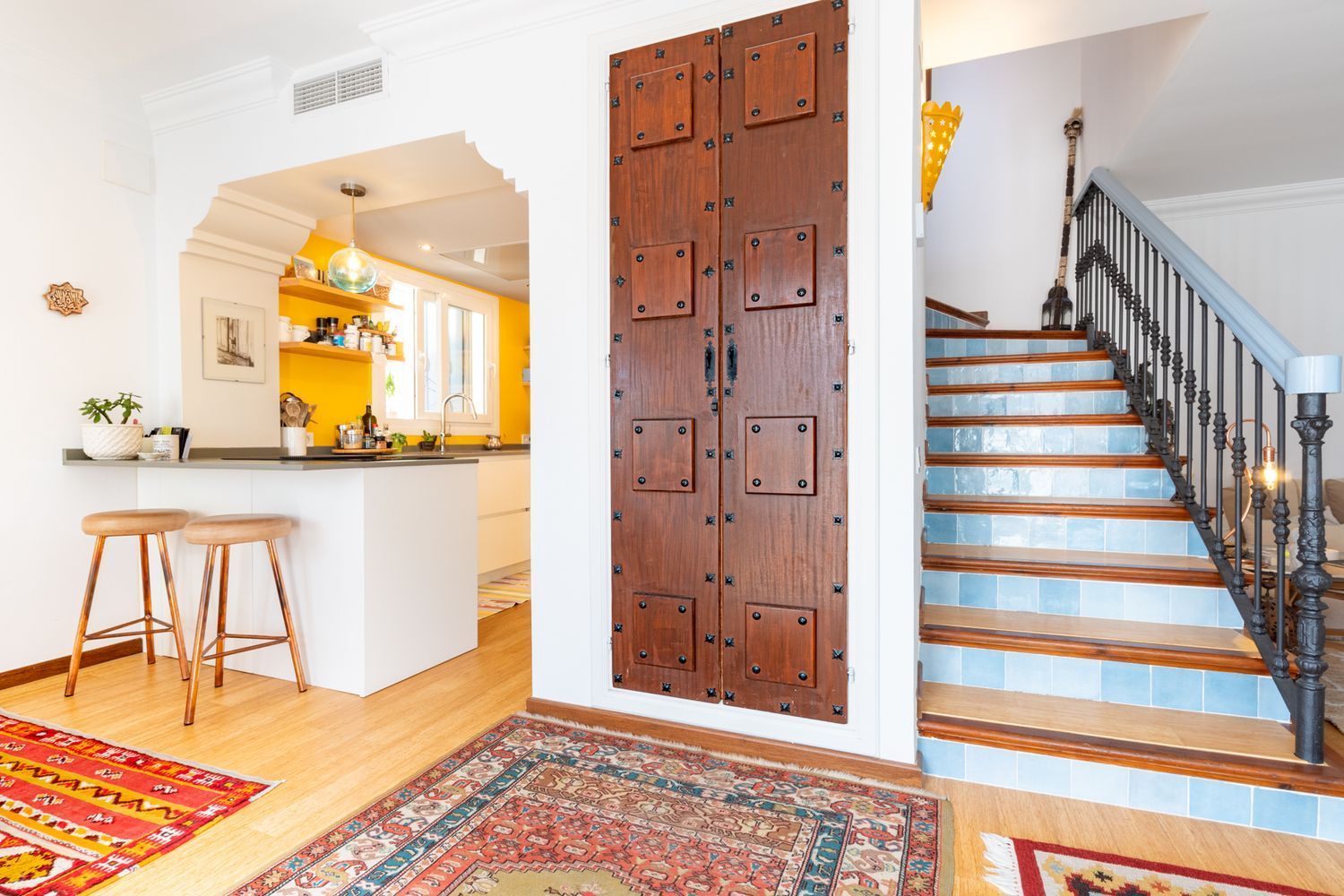 As you arrive at this charming, recently renovated townhouse, you\‘re greeted by a private south-facing terrace where the sun gently touches every corner. Step inside, and the heart of the home unfolds: a spacious open-plan living and dining area with an American-style kitchen, where the warmth of bamboo flooring and a cozy fireplace create a welcoming, homely atmosphere.