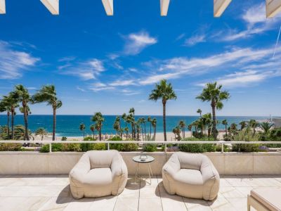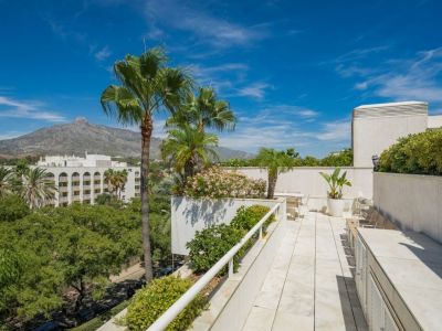 In the heart of Puerto Banús, within the prestigious residential complex Los Granados, stands this spectacular duplex penthouse, an exceptional property that redefines seafront luxury.
