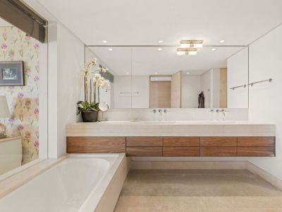 The three bedrooms, all spacious and bright, offer a serene atmosphere. Each has a spa-inspired en-suite bathroom where noble materials and meticulous details create an intimate and elegant retreat.