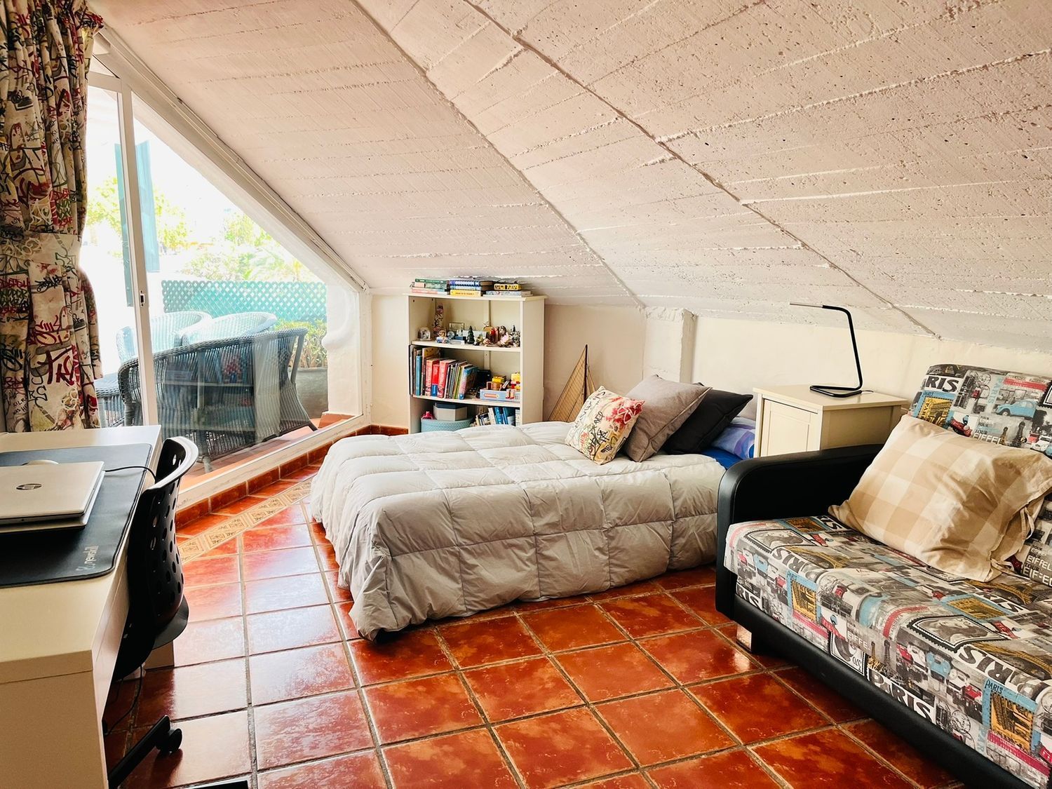This duplex penthouse consists of two very bright attic bedrooms, a furnished and equipped open-plan kitchen, a full bathroom, a living-dining room with access to the terrace, a covered terrace with a pergola, views of the Old Town and the famous Sierra Blanca (Juanar and La Concha). In addition, as it is a duplex in the upper part of the building, it has a private solarium where you can set up a chill-out area and enjoy 360º panoramic views of the sea, city and mountains. All amenities are within walking distance to make your life easier and more comfortable, such as a pharmacy, supermarkets, restaurants, Ochoa Hospital, etc. , so you won\‘t need a vehicle to get around (a real luxury). The building has a lift and a unique location. A unique opportunity. Come and visit!