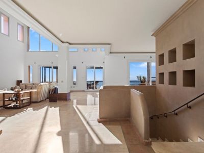 From the main entrance, the sensation is immediate: space, light and endless views. The high ceilings, large-format windows and generous proportions in every room create an atmosphere that is difficult to find even in the most exclusive villas. The impressive living room opens onto the Mediterranean horizon through expansive windows that flood the space with natural light and connect directly to a large terrace with both a glass-enclosed area and an open section, each offering truly spectacular views. Connected to the dining room, it forms a space perfect to redesign into an elegant, fluid and contemporary concept. The independent kitchen, spacious and bright, includes a pantry, laundry room and an additional room that can be adapted to multiple uses depending on the needs.