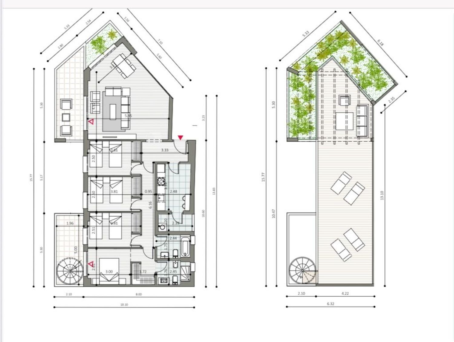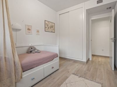 The bedrooms, bright and spacious, feature built-in wardrobes and high-quality finishes. Two of them have direct access to the upper terrace.