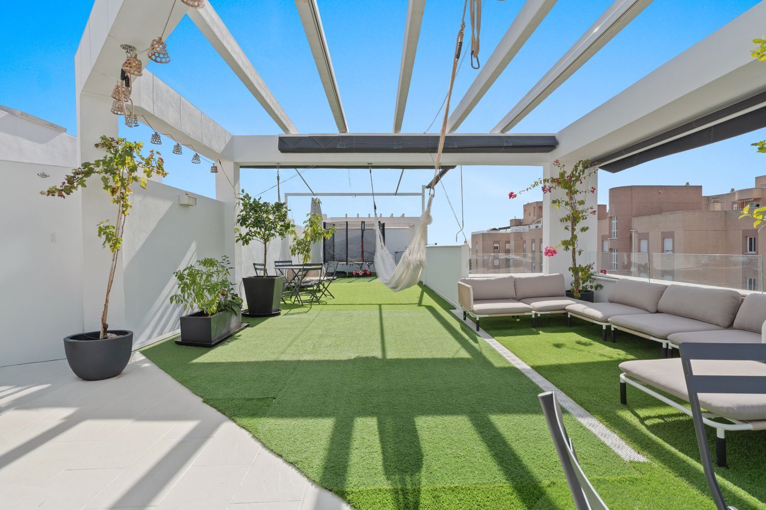 On the upper floor, the soul of the home is revealed: a large private rooftop terrace, designed to fully embrace the Mediterranean lifestyle.