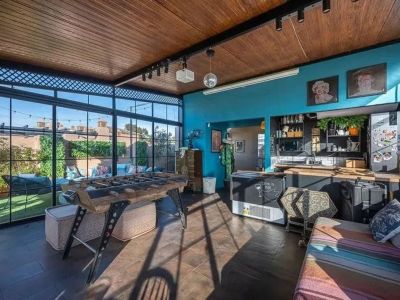 Ascending an interior staircase reveals the jewel in the crown: an upper floor transformed into a spectacular loft-style leisure area, designed for year-round enjoyment.