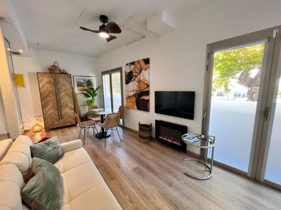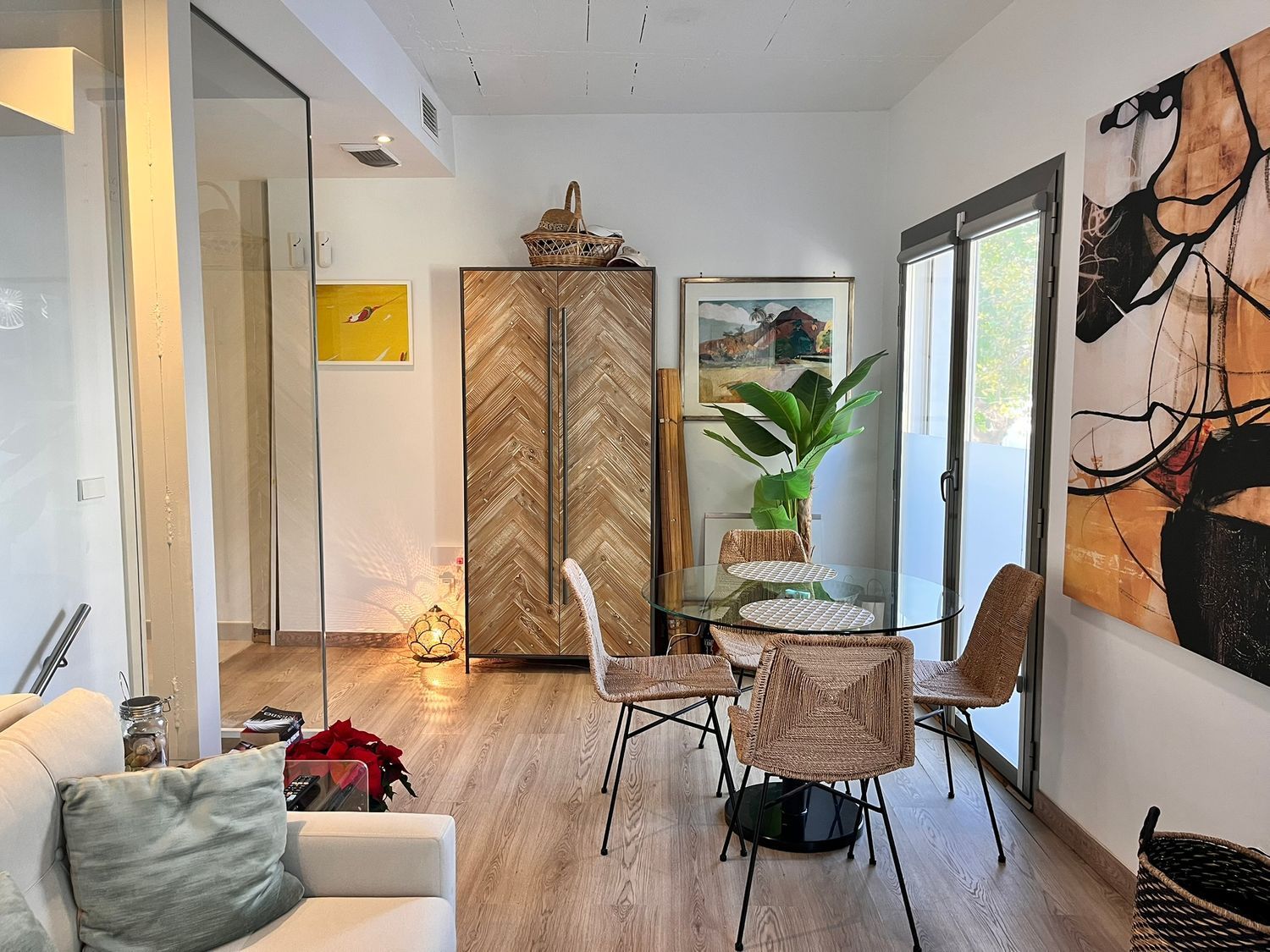 Fantastic duplex apartment in Marbella\‘s Old Town, completely renovated. The only flat in the building without neighbours. Ideal for owners with dogs. This very bright apartment has a living-dining room with hot/cold air conditioning and an electric fireplace with LED technology and large windows that provide plenty of light with high ceilings, a fitted and equipped kitchen, and on the second floor there is a bedroom with a full bathroom and a terrace. Walking distance to all amenities that make your daily life more comfortable without the need for a vehicle. A step from Marbella Old Town, where you can stroll through the city\‘s iconic narrow streets, and just 12 minutes from Marbella\‘s best beaches and the promenade. Great opportunity! Property with no extra costs. It is a candy. Come and visit!
