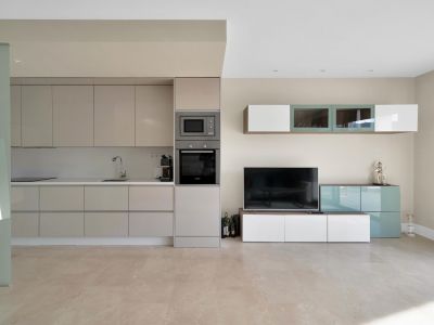 The apartment offers a bright living-dining room with an open-plan kitchen, designed for comfortable and contemporary living. The property has a west-facing orientation, providing pleasant afternoon and evening light.