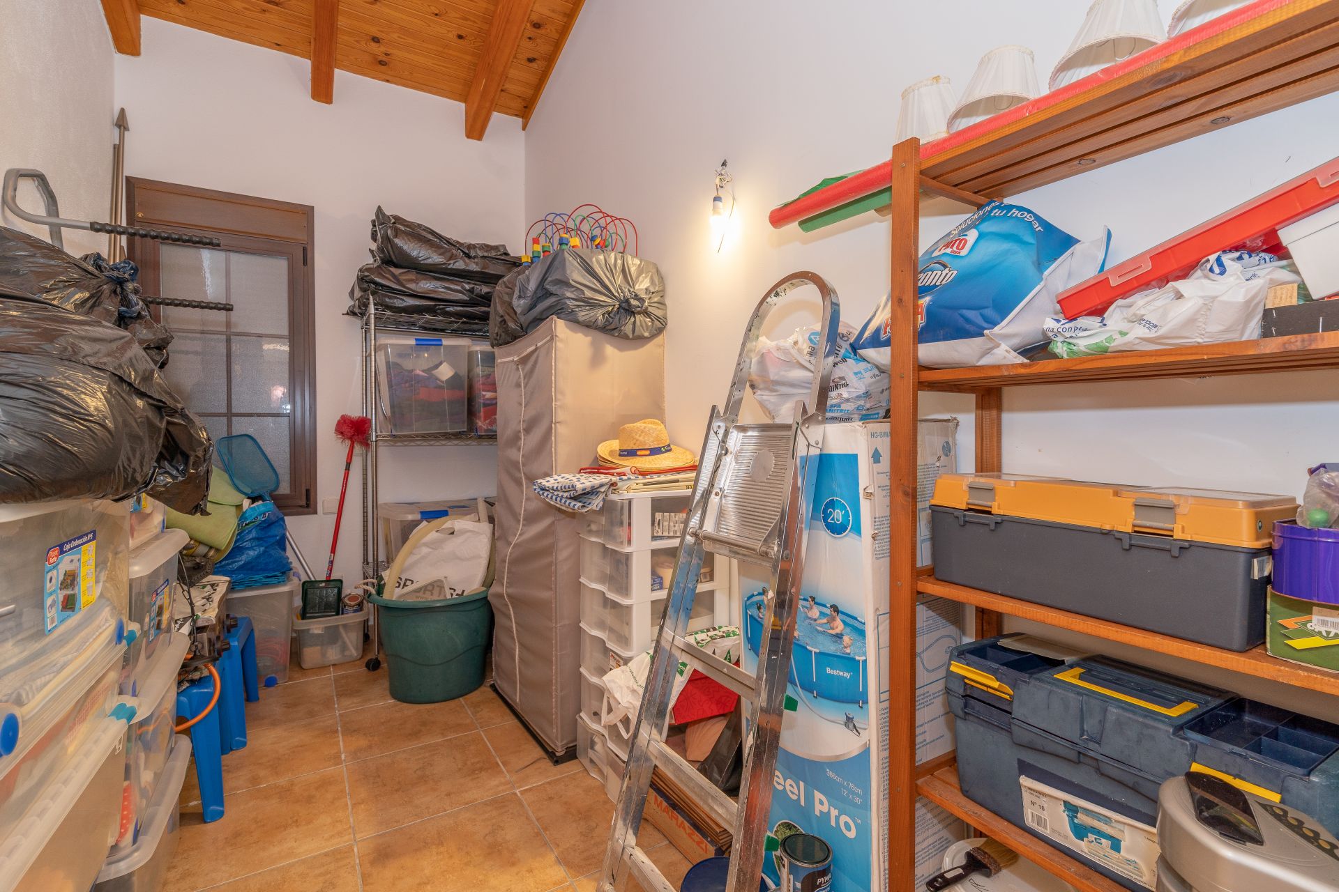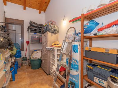 Exterior: The property is completely fenced and has a storage for gardening tools. The large plot (10 000 m2) has plenty of different fruit trees which gets water from its own well.