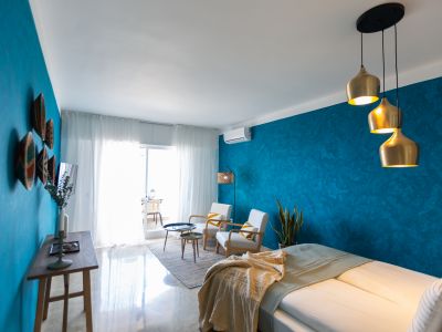 The studio has been completely refurbished with a modern, elegant touch, featuring high-quality finishes throughout. The open-plan layout maximizes space and light, with large windows offering breathtaking panoramic views of the Mediterranean.