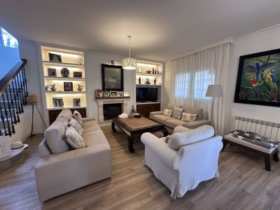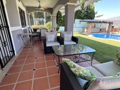 Villa for sale in Estepona with 3 bedrooms, 2 bathrooms, 1 on suite bathroom, 1 toilet and with orientation south/east, with private swimming pool, private garage (2 parking spaces) and private garden. Regarding property dimensions, it has 289 m² built, 754 m² plot, 210 m² interior and 79 m² terrace. Has the following facilities mountainside, amenities near, air conditioning, fully fitted kitchen, utility room, fireplace, satellite tv, storage room, alarm, security entrance, double glazing, video entrance, dining room, barbecue, guest toilet, private terrace, living room, parquet floors, mountain view, laundry room, internet – wi-fi, covered terrace, fitted wardrobes, garden view, pool view, wine cellar, unfurnished, close to golf, uncovered terrace, glass doors, separate dining room, balcony, good condition, close to shops, close to schools, individual a/c units, electric radiators and partial sea views.