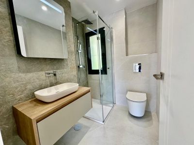 Stunning renovated 3-bedroom apartment with panoramic sea views, located in the desirable area of La Quinta. This beautifully updated property offers a perfect blend of modern comfort and unbeatable location, just minutes from the best golf courses, Puerto Banús, and the beach. The apartment features 3 bedrooms, 2 bathrooms, a spacious open-plan kitchen, and a bright living-dining area with direct access to a generous terrace boasting breathtaking views of the sea and mountains. Renovated throughout with high-quality materials, the apartment also includes a utility room for added convenience. The complex offers covered community parking and access to two swimming pools, all situated right next to La Quinta Golf Course. Ideal for golf lovers or those seeking a peaceful home close to Marbella’s vibrant lifestyle.