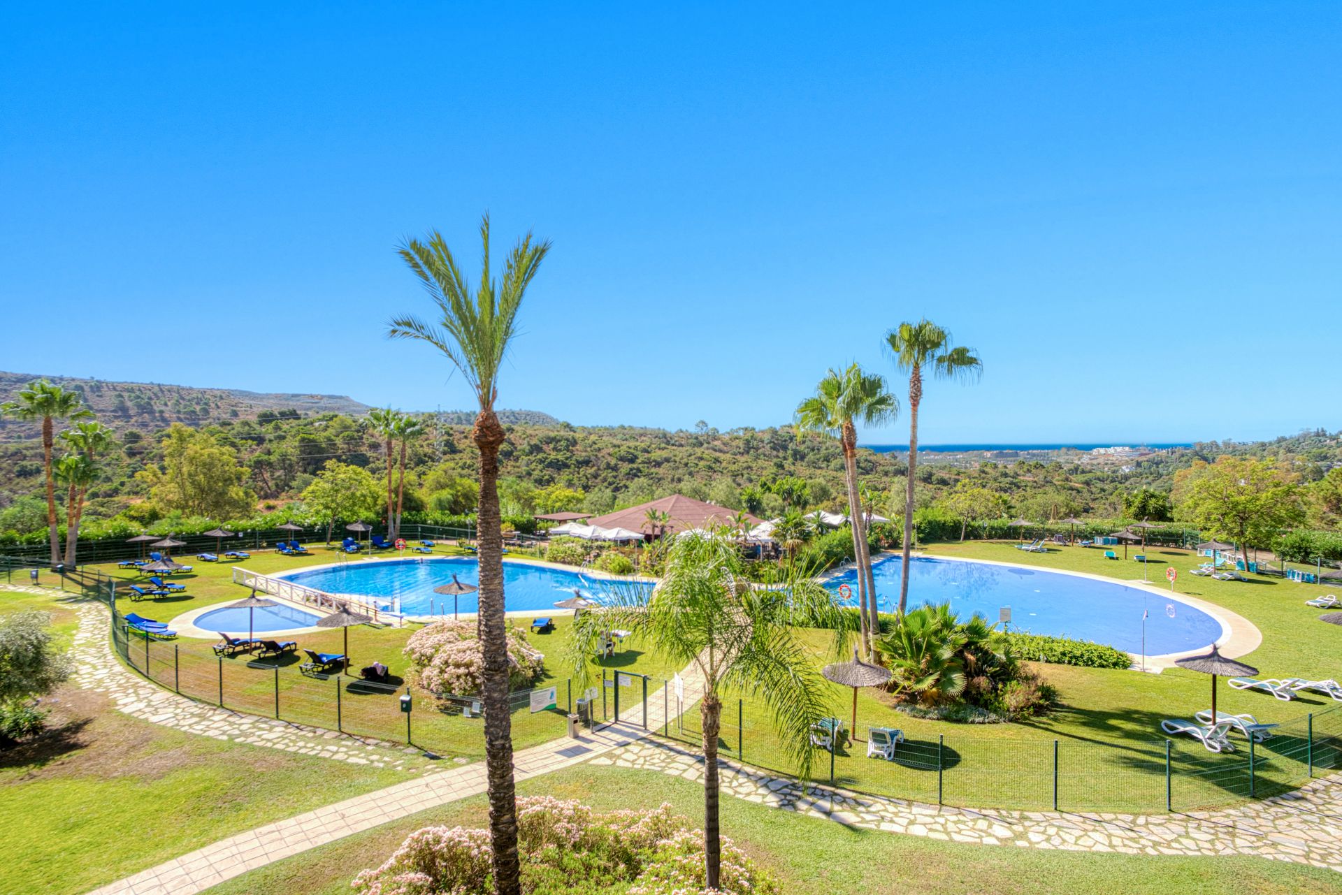 Spacious and west-facing, this charming duplex penthouse features three generous bedrooms, offering panoramic views of lush gardens and serene countryside, located in Parque Botanico, Estepona. The inviting living area includes a cozy fireplace and opens onto a delightful terrace, ideal for enjoying the afternoon sun. A fully equipped kitchen, built-in wardrobes, window shutters, and hot/cold air conditioning add to the comfort and functionality of the home. Located in a secure gated complex with 24hr security, the property comes with a private underground parking space and a storage room. Residents enjoy access to tropical, beautifully maintained gardens, multiple outdoor swimming pools, an indoor heated pool, a gym, sauna, and a seasonal bar-restaurant. Just a short drive from the beach and coastal amenities, this tranquil setting combines natural beauty with on-site conveniences. With a tourist license in place, it presents a perfect opportunity for investment.