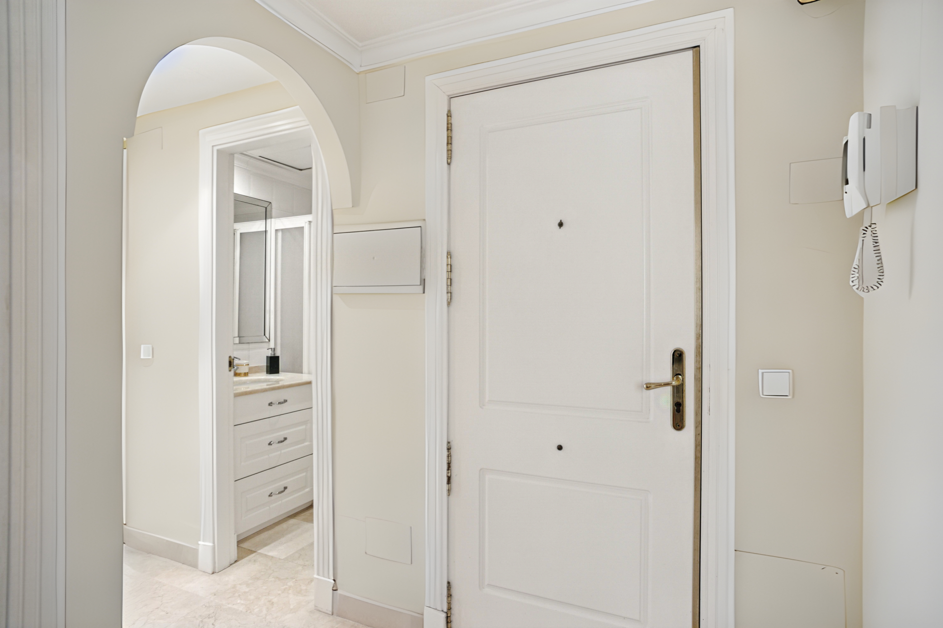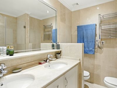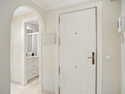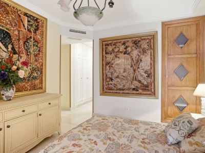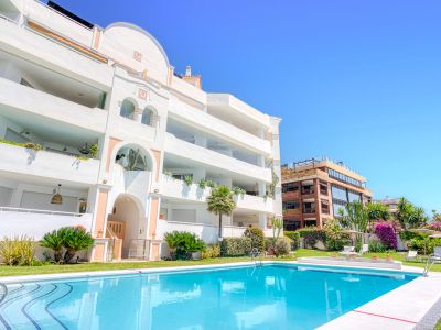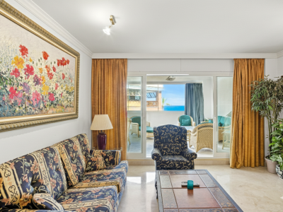 Beautiful two-bedroom, south facing apartment with stunning sea views, located just minutes from the beach in the prestigious La Herradura community in Puerto Banús, Marbella. This property offers the perfect blend of luxury and coastal living. The apartment features a bright and spacious living and dining area, a fully equipped kitchen, and a private terrace with panoramic sea views. Both bedrooms are generously sized, with the master bedroom benefiting from an en-suite bathroom. Additional amenities include air conditioning, elegant marble flooring, and a south-facing orientation that fills the space with natural light. The property also includes a large storage room with its own bathroom, one private parking space, and access to well-maintained communal gardens and a swimming pool within a secure and well-kept community.