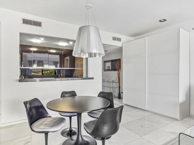 Beautiful beachfront penthouse with sea and La Concha mountain views, located in a gated community in the heart of Puerto Banús. Just a few steps from the beach, restaurants, shops, and all amenities. This bright and welcoming property offers an unbeatable location and the perfect combination of comfort and lifestyle. The penthouse features one bedroom and one fully equipped bathroom, as well as a modern kitchen and a spacious living-dining area with a fireplace, filled with natural light. The interior has been designed for both functionality and comfort, and includes centralized air conditioning, shutters, and a pleasant, airy atmosphere. The gated community provides a secure and peaceful environment, ideal for both permanent residence and holiday stays. Additionally, the property offers the possibility of short-term rentals, making it an attractive investment opportunity. An exceptional opportunity to acquire a penthouse in one of Marbella’s most exclusive areas, combining stunning sea and mountain views with a truly privileged location.