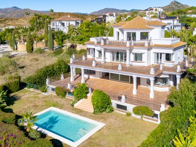 Exceptional eight bedroom, south-facing villa located in the prestigious gated community of Los Flamingos, Benahavis