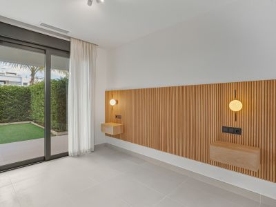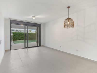 Well-presented east-facing two-bedroom ground floor apartment located in the popular gated community of Miradores del Sol, ideally situated in Cancelada and within close proximity to the beach, shops, restaurants, and all essential amenities. The property offers a comfortable and functional layout, featuring a bright living and dining area with access to the terrace and private garden; a master suite; guest bedroom; guest bathroom; fully fitted kitchen with a separate laundry area; private rear patio; and direct access from the private garden to the communal areas. Residents of Miradores del Sol benefit from excellent communal facilities, including a large swimming pool, two jacuzzis, and a children’s playground, all set within beautifully maintained gardens. Other features include hot and cold air conditioning, underfloor heating throughout, a private parking space, and a storeroom.