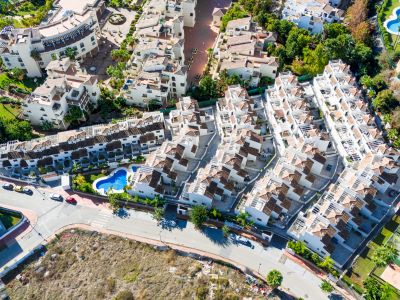 Elegant, three bedroom townhouse located in the gated community of Agra Residencial, a charming Mediterranean-style complex of 47 spacious homes situated beside El Campanario Golf & Country Club, in the heart of Estepona’s prestigious Golden Triangle. Ready to move in, this property showcases bright, open interiors with quality finishes, including ceramic flooring, fitted wardrobes, modern bathrooms with glass shower screens, and a fully furnished kitchen. Designed for comfortable living, it features generous terraces, a private solarium, and a private pool—perfect for enjoying the Costa del Sol lifestyle. Additional highlights include hot and cold air conditioning, two underground parking spaces, and access to beautifully landscaped communal gardens and a swimming pool within this secure, gated community.