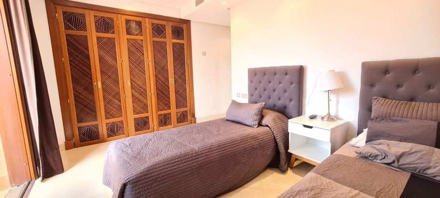 Experience luxury and tranquility in this elegant apartment for sale in Estepona, located in the prestigious Mar Azul complex, right on the beachfront. With 2 bedrooms and 2 bathrooms, this property offers a sophisticated lifestyle with direct access to the golden sands of the Costa del Sol. The interior has been designed to create a warm and refined atmosphere, blending comfort and style in every detail.