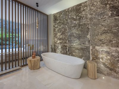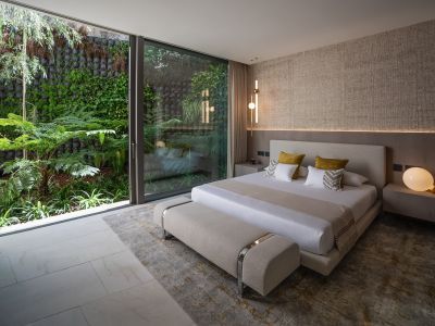 The villa features 5 bedrooms-suites including a spacious guest apartment, which could be adapted to an additional 6th bedroom.