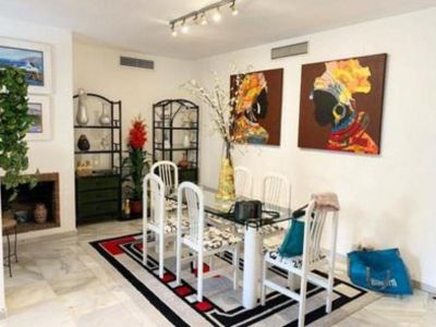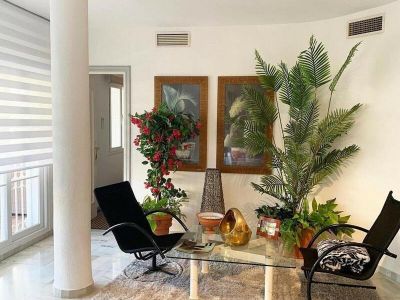Spacious 5-bedroom apartment in the gated community Rocamar in Nagueles, Golden Mile between Puerto Banús and Marbella, above the AP7. One-storey apartment with 170 m2 built, it has 5 bedrooms, 3 bathrooms, a spacious living room with a fireplace, an equipped kitchen, a magnificent 24m2 terrace with views of the community pool and garden. The urbanization has beautiful garden areas, security 24 hours a day. The apartment includes air conditioning, garage space and a large storage room.