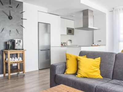 2 bedrooms + living room with kitchen, 2 bathrooms