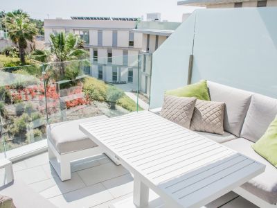 Modern penthouse for sale in the prestigious Serenity Collection development in Estepona. The property is like new, fully furnished, and is being sold with all the necessary equipment: ideal for both living and investment.