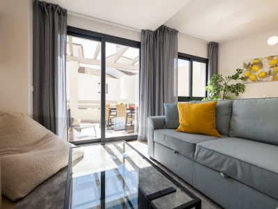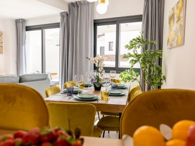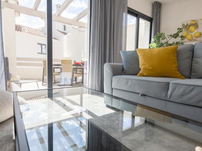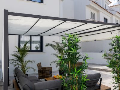 This elegant luxury townhouse is located in Agra Residencial, a sought after area of Estepona Este, Malaga, which combines privacy, security and proximity to a wide range of services and attractions. With a built area of 178 m2, of which 138 m2 correspond to the interior and 40 m2 to private terraces, the property offers a sophisticated and comfortable lifestyle in a privileged enclave, close to golf courses, beaches, schools, shops and leisure areas.