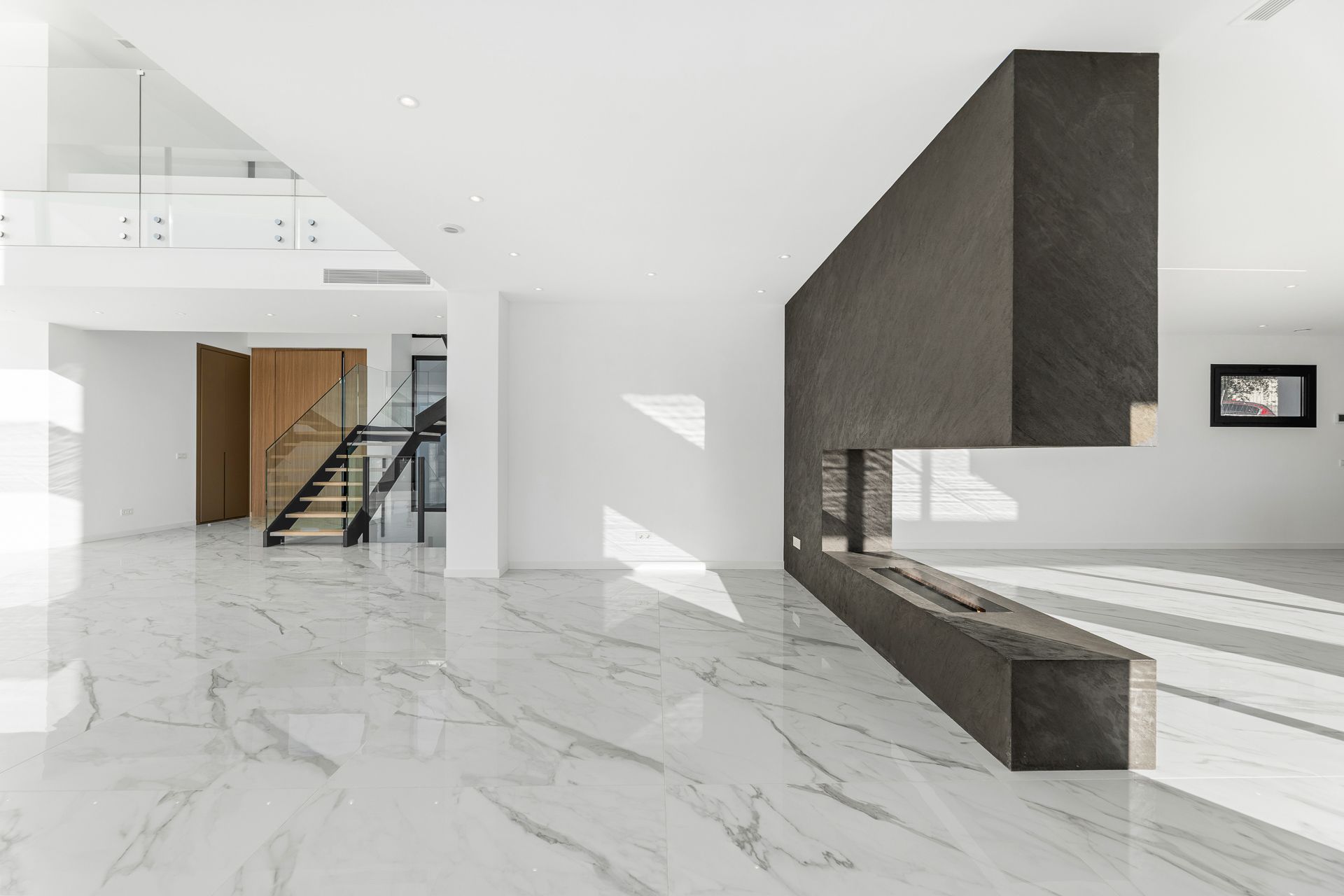 Upon entering, you are greeted by an atmosphere of grandeur, with double-height ceilings and floor-to-ceiling windows that flood the spaces with natural light and create a seamless connection between indoors and outdoors.
