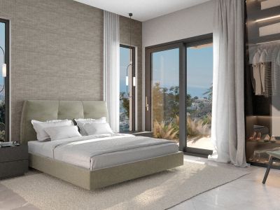 As you step outside, a large terrace boasts panoramic sea views. Here, you´ll find an infinity, panoramic pool built of Indonesian stone, known for its water purifying properties. Sunbeds, a spacious dining table, a chic chill-out area create the perfect place for basking in the Mediterranean sun.