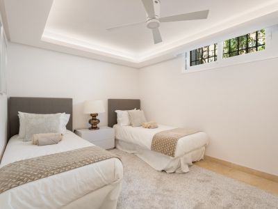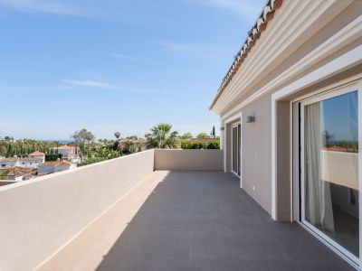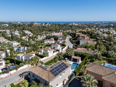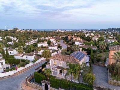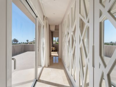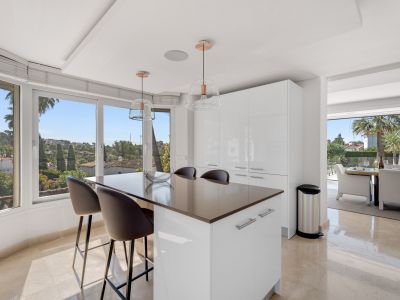 This impressive luxury villa, exclusively available through our sole agency, is situated in the desirable neighbourhood of Nueva Andalucia. Boasting a substantial built area of 510m² on the best Plot with a generous 1,200m² very high privacy factor , the property offers six spacious bedrooms, five bathrooms (four en-suite), and an additional guest toilet, designed to accommodate the highest standards of modern HIGH Quality family living.
