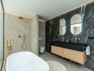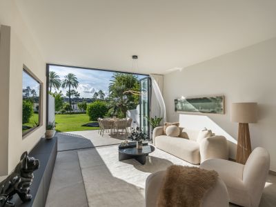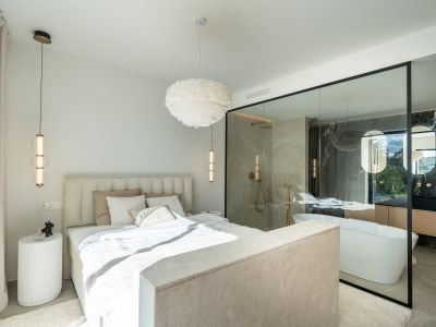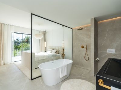 Distributed over two floors, Casa Preciosa has been totally refurbished and decorated to a high standard and with quality design. Accommodation comprises, on the garden level: lovely entrance patio, hallway, two guest bedrooms sharing a bathroom, guest toilet with enclosed utility room, open plan living area including the sleek designer fully fitted and equipped kitchen, leading on to the charming terrace enjoying pleasant garden and pool views and with direct access to the beautiful grounds. An elegant staircase leads to the first floor, comprising the master suite with a terrace overlooking the gardens and pool towards the Golf Valley and the mountains, plus a guest bedroom with en suite bathroom.