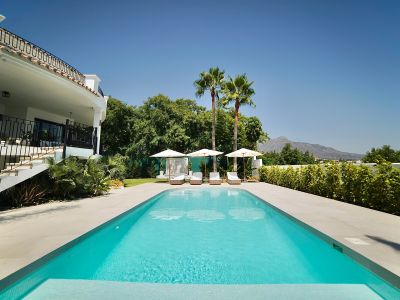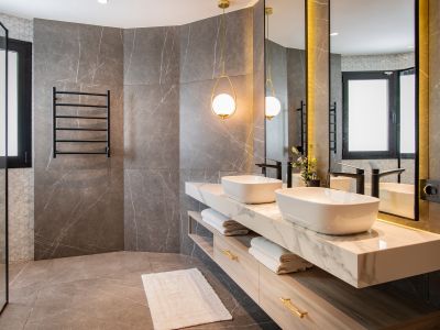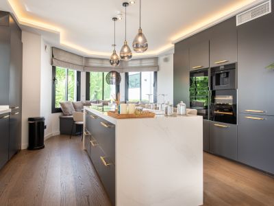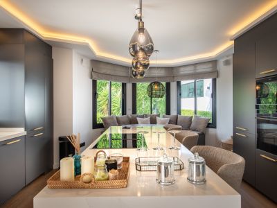 Nestled in the prestigious La Quinta area of Benahavis, this stunning 303-square-meter villa (386 sqm including terraces) sits on an expansive 765-square-meter plot, offering an unparalleled blend of luxury living and natural beauty. With its coveted south-facing orientation, the property is bathed in natural light throughout the day while providing breathtaking panoramic views of the sea, golf course, and surrounding mountains.