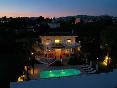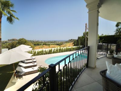 Modern 5-bedroom villa in La Quinta, Benahavís with sea, golf & mountain views, private pool, outdoor gym, and just 4 km from the beach