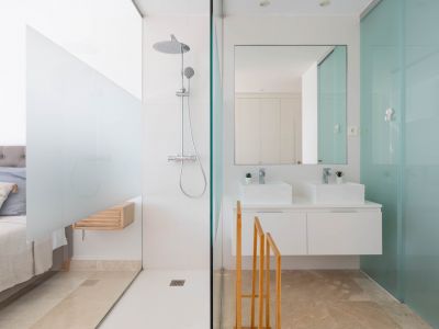 The penthouse features an impressive two-level terrace layout, culminating in a spectacular rooftop solarium that serves as a private sanctuary for sunbathing, entertaining, or simply enjoying the uninterrupted views of the Mediterranean. From sunrise to sunset, the south-facing orientation ensures abundant natural light throughout the home as well as warm, sunlit terraces all day long.