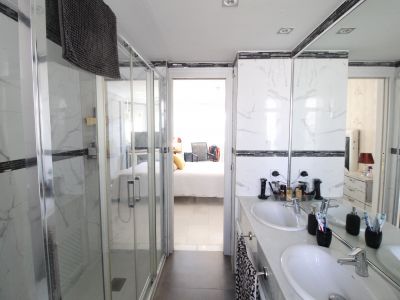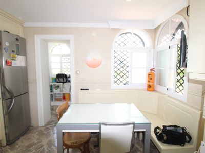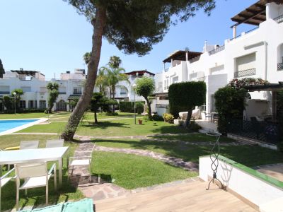 Enjoy the communal garden from the lounge porch! On the first floor are the 3 bedrooms and 2 bathrooms, one of them en suite with shower and large dressing area. New wardrobes in all bedrooms . It is a closed and very well maintained community. The house has several Porches, and huge Solárium with a wooden roof recently put so this new one. Ideal for chill out area and outdoor dinners with barbecue and closed part as well as laundry room. The fantastic panoramic views of the whole wooded area and the mountains of La Quinta. The urbanization is close to everything: Supermarkets, Colleges, Shops, Restaurants etc.. is ideal for Holidays or for families. And perfect to live all year. It has general air conditioning throughout the house and blinds. San Pedro de Alcántara is a 4-minute drive from Puerto Banus. It is for all an ideal house for families and also for investment and enjoy Marnbella with everything next to it;