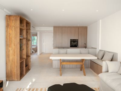 This stunning three-bedroom first floor apartment, located in the sought-after area of Nueva Andalucía, Marbella, offers an exceptional blend of etnic-Scandinavian, boho design, comfort, and elegance. Fully refurbished to an impeccable standard, the property boasts a bright open-plan living and dining space, thoughtfully created for both everyday living and effortless entertaining.