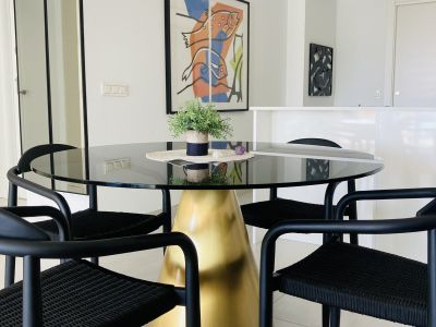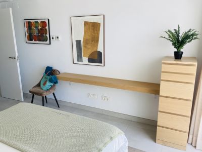 Only 7 minutes by car and you can do your shopping or have easy access to the A7 in the direction of Marbella. The Costa del Sol hospital is also close by. Of course, you will also find the nearest beach, Playa Bahia de Marbella, just 8 minutes away by car and many more within a 10-15 minute drive. The same applies to many golf courses in the area, which can be reached quickly by car. The new owner could, for example, work comfortably from home or let tenants enjoy the apartment, because here you will find the most modern comfort combined with tranquillity and Andalusian flair, also due to the well-kept and Spanish-style complex.