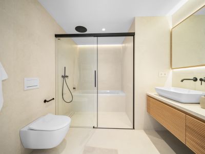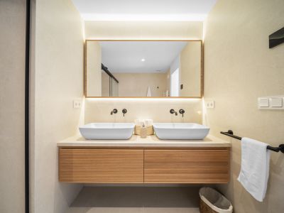 Every feature of this residence has been carefully curated to deliver a lifestyle of comfort and sophistication. Each bedroom boasts an en-suite bathroom and its own private terrace, and there is a guest toilet for convenience. The open plan kitchen by Santos is a focal point, perfect for both everyday living and entertaining, while the lounge is enhanced by a planika fireplace and direct access to a covered terrace. Double glazing, electric shutters, electric awnings and a smart home system ensure comfort and peace of mind, whilst underfloor heating in the bathrooms and aerothermics provide year-round climate control.