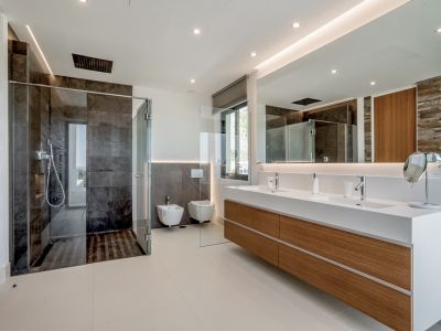 This exceptional villa is nestled within an exclusive gated community in Marbella’s prestigious Golden Mile. Set on a generous south-facing plot, the property is bathed in natural sunlight and enjoys breathtaking panoramic sea views from both floors, creating a serene and luxurious coastal retreat.