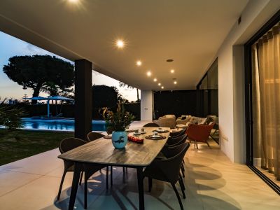 The outdoor spaces are equally impressive, featuring breathtaking sea views, private pool, stylish terraces, and a meticulously landscaped garden – ideal for both relaxation and entertaining.