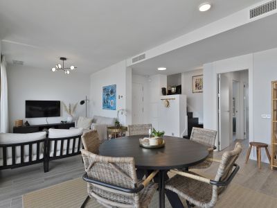 The location of this penthouse is ideal for those seeking proximity to various amenities. It is just a 5-minute walk to the charming town of Cancelada, which offers a variety of restaurants and services. The beach and the prestigious Anantara Hotel Villa Padierna, along with the three golf courses of Los Flamingos, are also within walking distance.