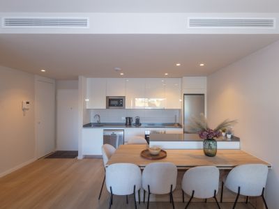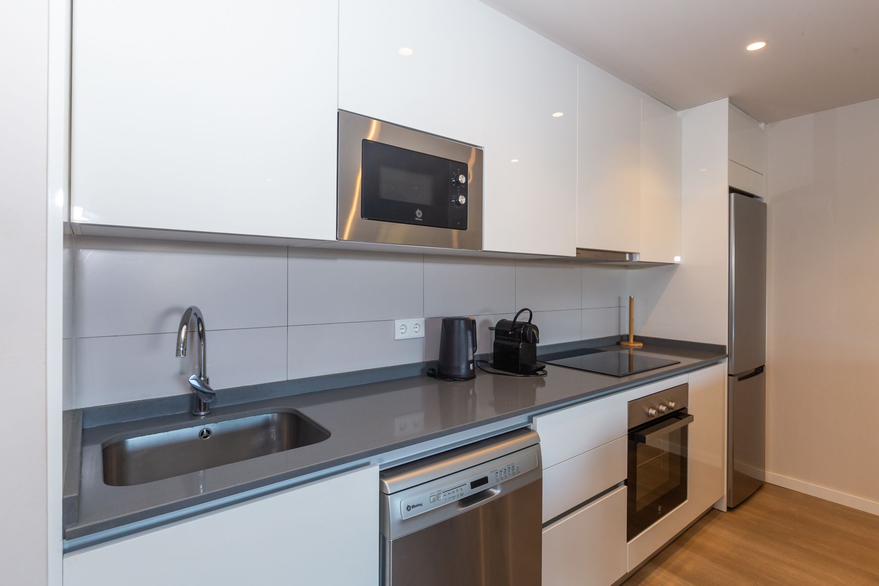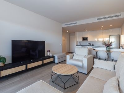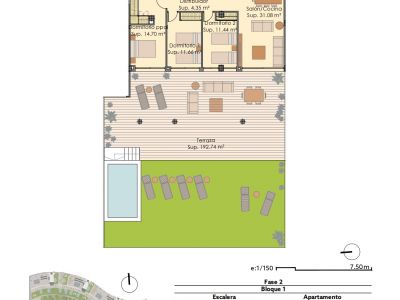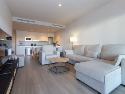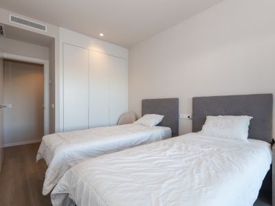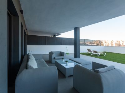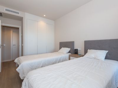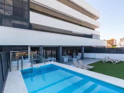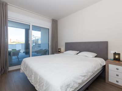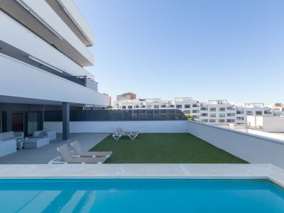 The home has 3 bedrooms with its enormous and exclusive terrace of almost 200 m2 and is located on the fourth floor. It has a built-up area of 115 m2 plus a spectacular 193 m2 terrace and private pool. The unique feature is that all bedrooms and the living room have direct access to the terrace. There, we can enjoy a covered terrace for winter days and a much larger outdoor terrace with a private pool for summer days. The kitchen is open to the living room, providing continuity and lighting. It is furnished and equipped with all the latest equipment. In addition to the 3 bedrooms and 2 bathrooms (one en-suite), there is also a room reserved for laundry.